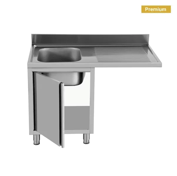 Dette professionelle køkkenvaskebord er designet til at optimere arbejdsgangen i travle miljøer ved at integrere vaskestationen og opvaskeområdet. Med en dyb vask og dedikeret plads til din underbordsopvaskemaskine er det en pladsbesparende og yderst funktionel løsning.